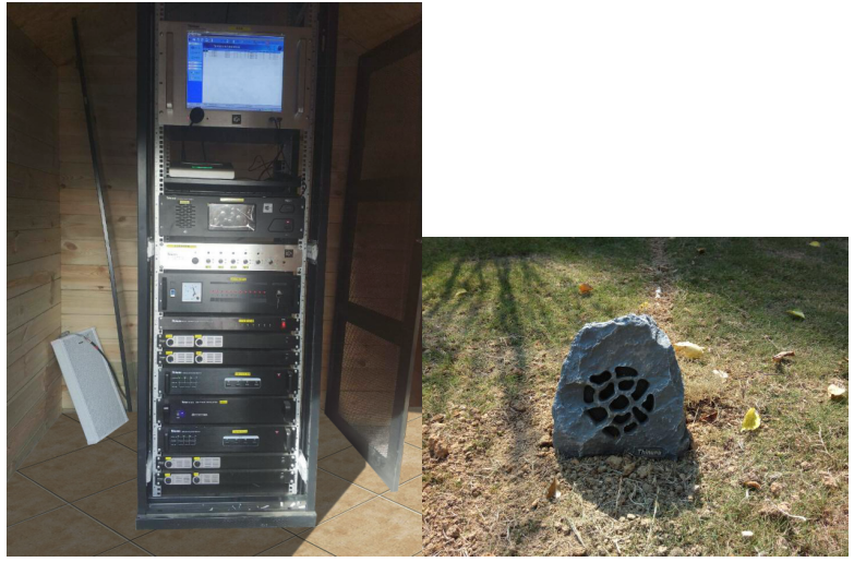 云溪谷公共广播系统项目同时还搭配了SK-840大型室内外豪华音柱和LS-502室外仿石草坪音箱两款室外扬声器。