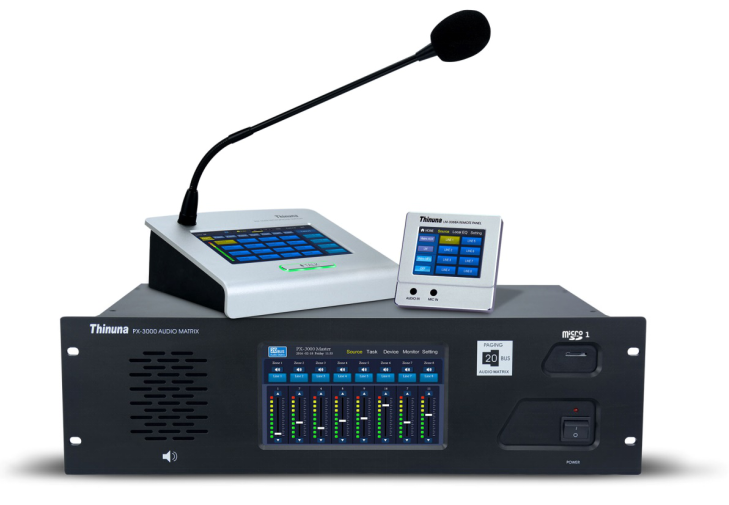 PX-3000总线型矩阵公共广播系统是全新的极具竞争力的数字广播系统和商业音频系统,基于总线式进行音频和控制信号的传输。能够应用于需求多音源同时播放的公共广播或商业安装需求,简单的三台设备可以搭建起大小中型的公共广播系统及商业音频系统,外加拓展的网络音频接口盒可以组建更大型的分布式网路音频管理系统。无论大小,简单还是复杂的系统需求都可以轻松满足,是完美的音频管理系统解决方案。系统的特点可以让本系统广泛应用于高层建筑、酒店、车站、商业综合体、娱乐场所、医院、会议中心、餐厅、学校等场所。与同类产品相比较,PX-3000系统的设计显得更加人性化,为管理人员提供更加方便,简单,灵活的操作;为音视频系统设计师提供更机动的配置方案,为工程人员提供更简单的安装方式。主机提供了丰富的音量调节,均衡调节,音源切换,远程面板使用权限控制,监听功能等,能够让用户以最精简的设备完成最完善的中小型矩阵广播功能。