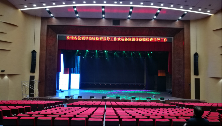 强大的Peavey线阵列扬声器系统设计软件为我们安装调试提供了强有力的指导。通过CAD模拟计算与Peavey设计软件结合现场实际出图测试,我们得出了主扩声扬声器Versarray112阵列数量为8只、吊挂高度5.3米、整体向下倾角6.7度以及阵列单元间的阵列夹角。