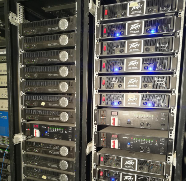 扩声系统均采用Peavey专业功率放大器驱动,除保证声音的一致性以外,更重要的是CS系列功放以及PV系列功放具备的DDT专利技术。通过该技术可实时地自动验收信号电平大小,在输出功率过载的情况下,常规放大器可能已经开始输送削顶的方波信号而具备DDT专利技术的Peavey放大器却能够在限制输出电平的同时,保留还原平滑原始的波形信号。