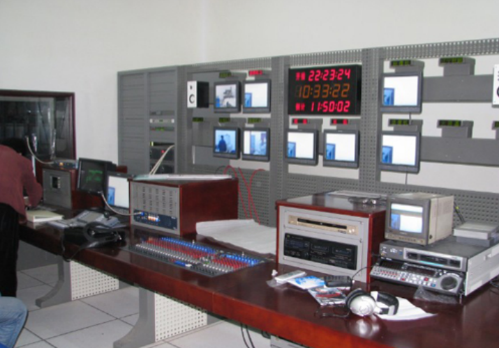 总投资千万元资金改造的400平方米电视演播大厅抚顺市综合技术最先进、系统最完备的演播厅。其内部所用扩声设备群全部为美国PEAVEY,顶级音响设备。