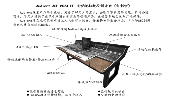 核心设备:24通道定制型模拟数控录混台Audient ASP8024