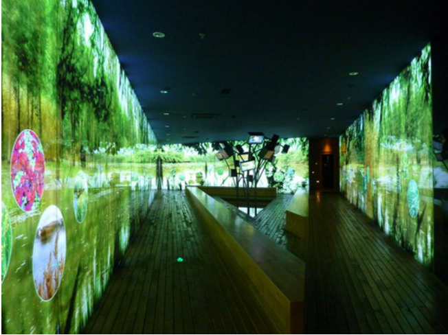 三层为大型场景“百鹊归巢”,通过喜鹊跟随着我们回到家园,讲述全球范围内人类在保护湿地、保护自然过程中所走过的“足迹”,从而,在宏观层面上带来一种理性的思考。