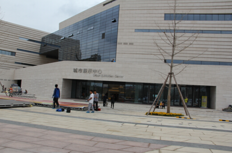 烟台城市展示馆中心位于烟台开发区滨海广场中央,2013年开工建筑,总建筑面积2万平方米,包括地下一层、地上四层,建筑外墙由下到上层层出挑,呈现“礁石”设计理念。中心总布展面积1.1万平方米,分数字沙盘展示区、特色规划展示区、临时展示区、3D影院、会议接待区等。作为开发区精心打造的新的城市地标,城市展示中心将成为展示城区历史、现状、远景的“名片”,公众参与城市规划、推进“阳光规划”的重要媒介,以及市民休闲、信息交流、集会活动的重要公共场所。
