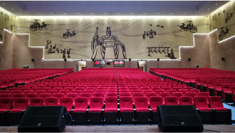 该演艺大厅属单层观众结构,可同时容纳1000余人在此参加拜祖集会活动、举行仪式、观民族文化演出(包含恭读拜文、高唱黄帝颂歌、乐舞敬拜、祈福中华、天地人和等多个章节)。同时也为了资源最优利用,在无拜祖活动的“闲”时,演艺大厅也为校内师生各类汇报演出、集体观影、院校报告会等需求提供一个非常理想的场地。